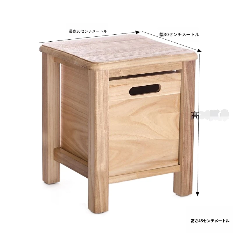 収納力抜群!45cmの高さの実木製スツール - 学習にも最適な収納付きベンチ!ベッドサイドや小物収納にもピッタリ!