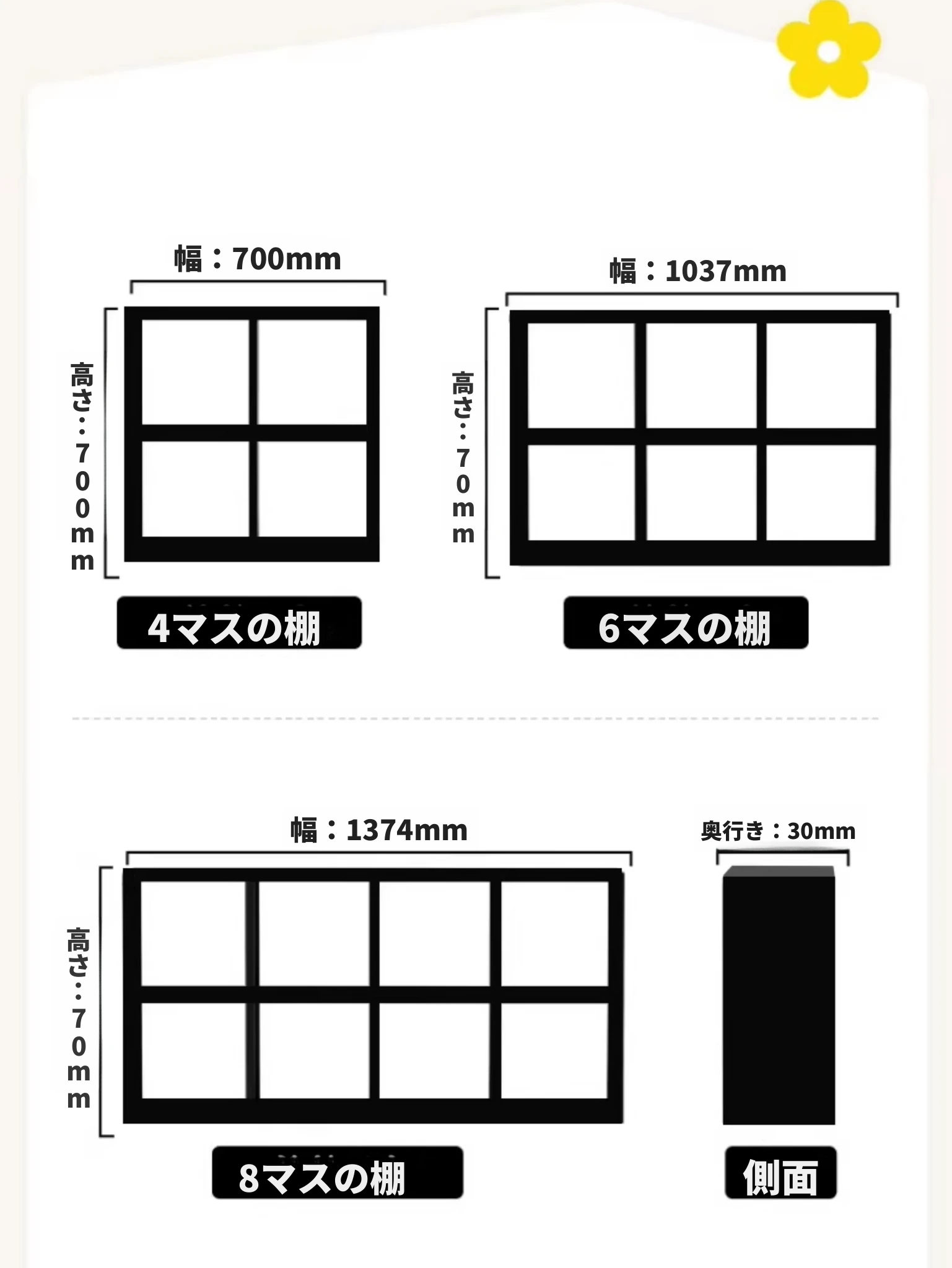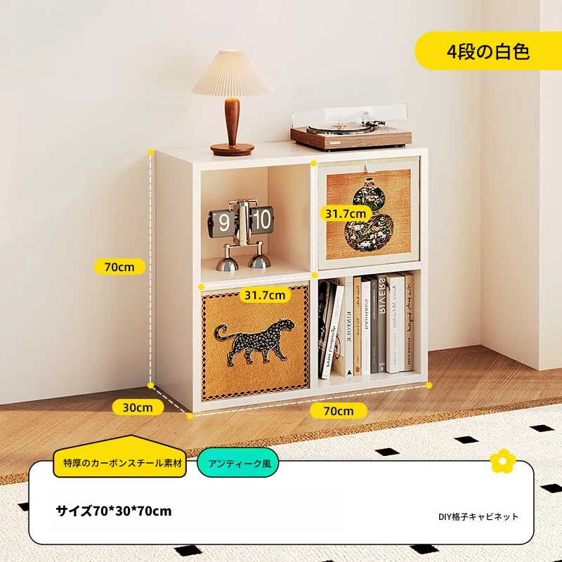 【スチールメッシュキャビネット】★白色4格-横型★0フォルムアルデヒド★70*70*(30深さ)CM