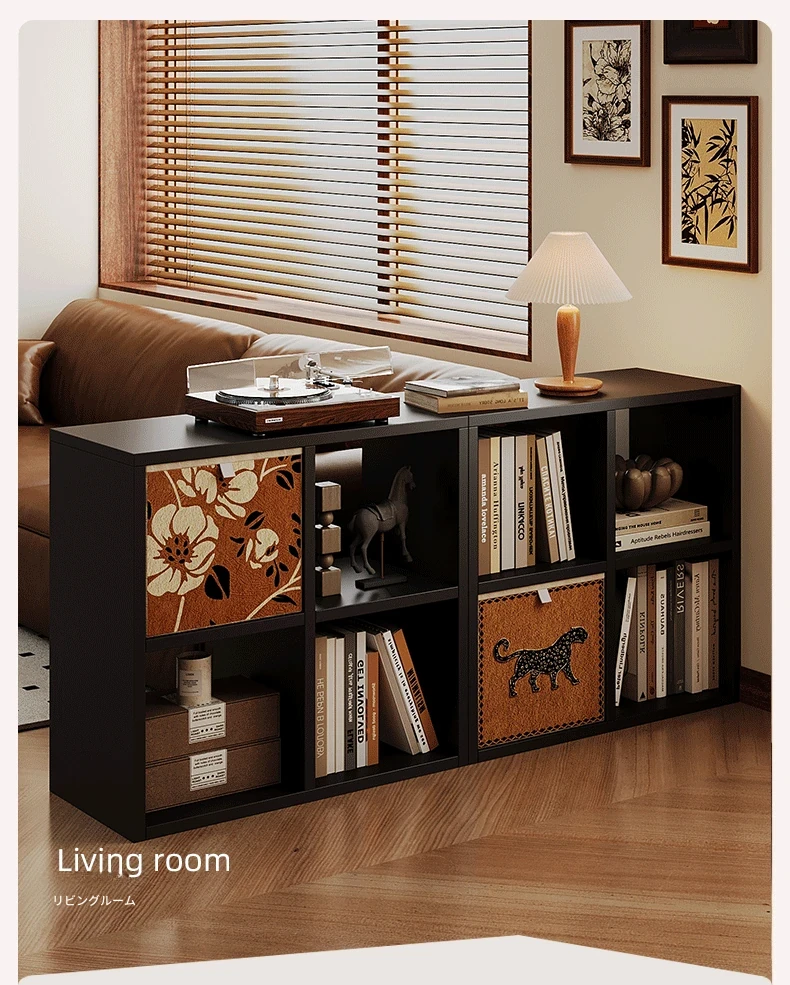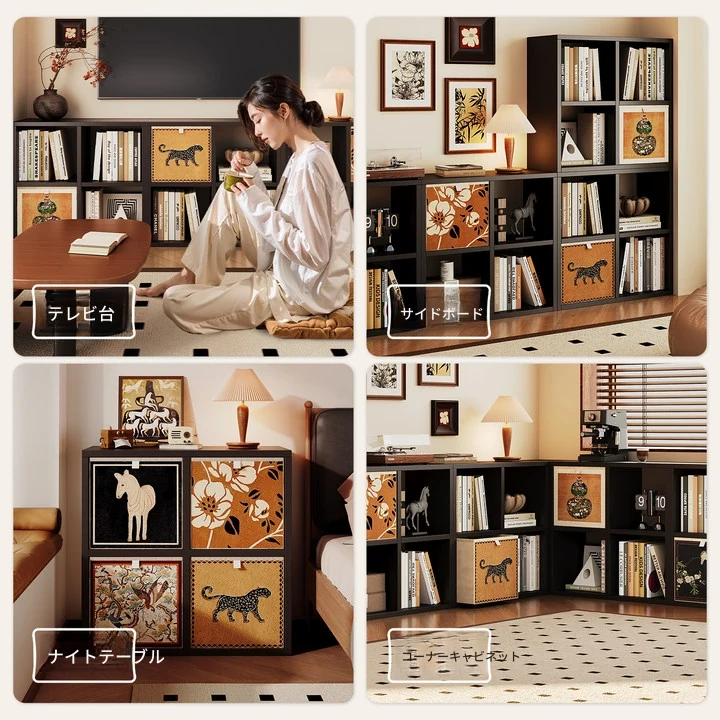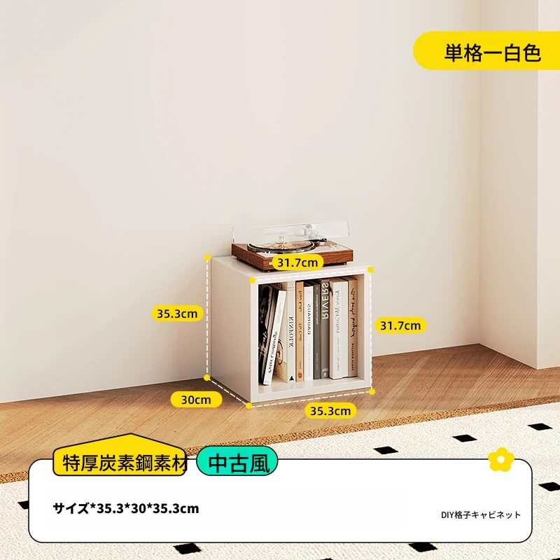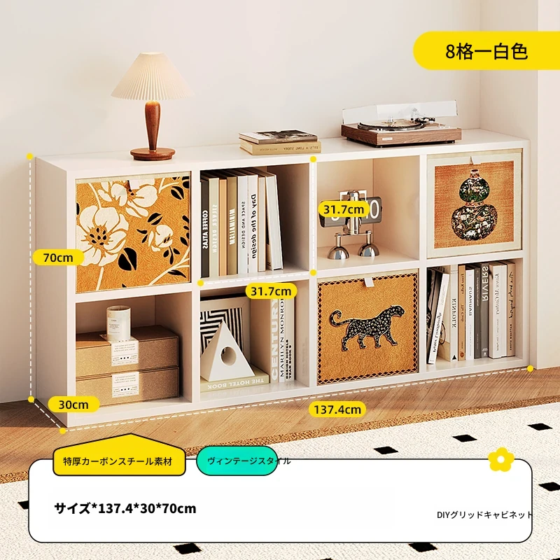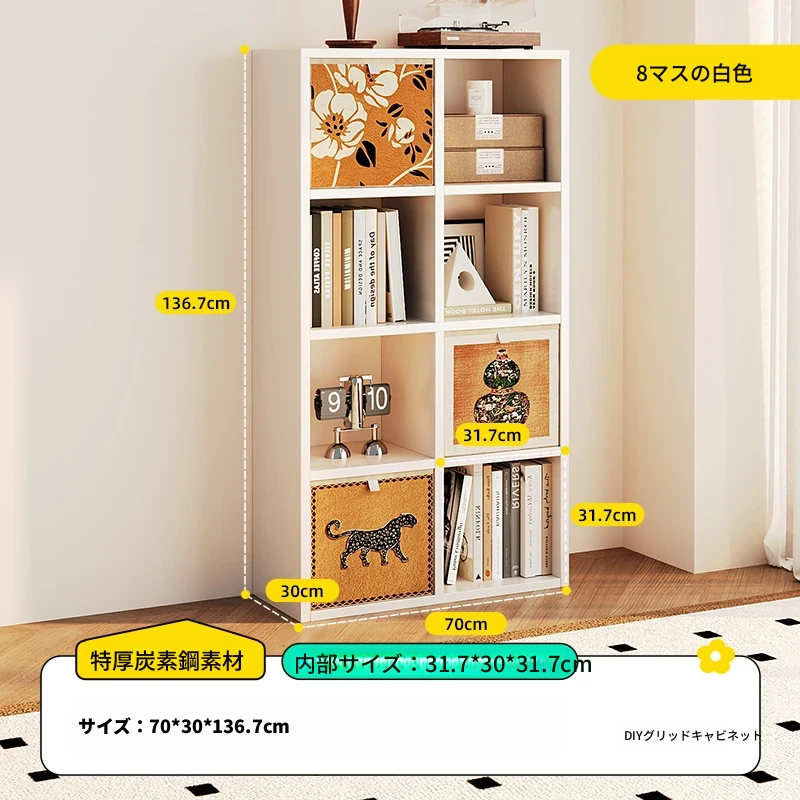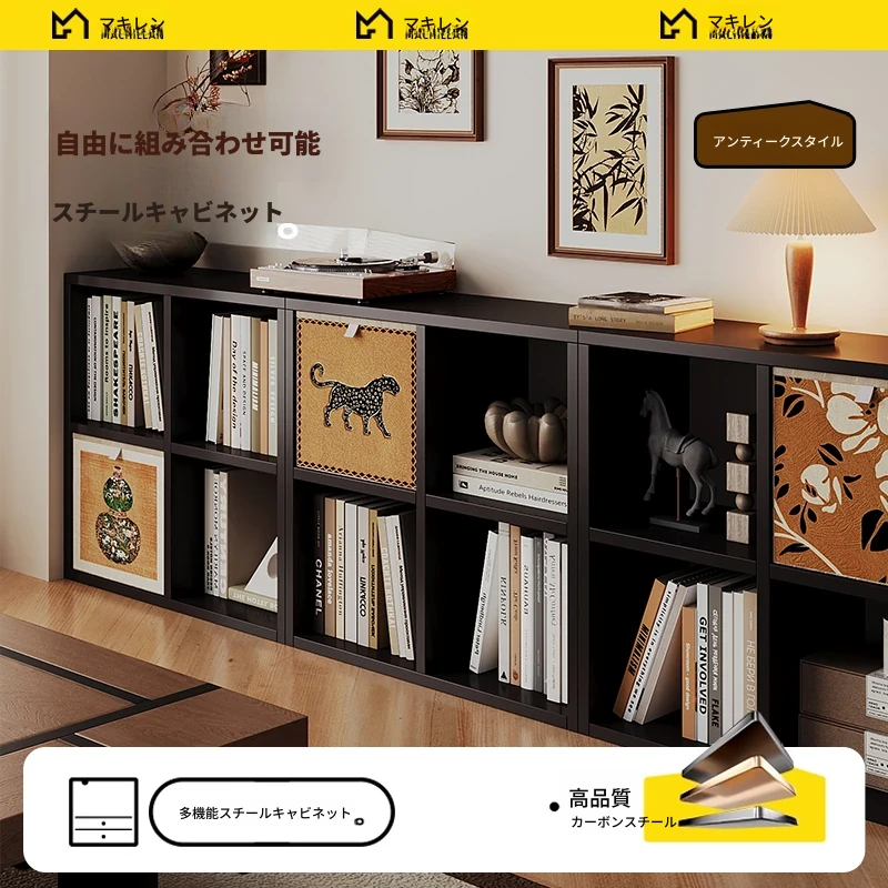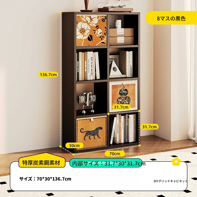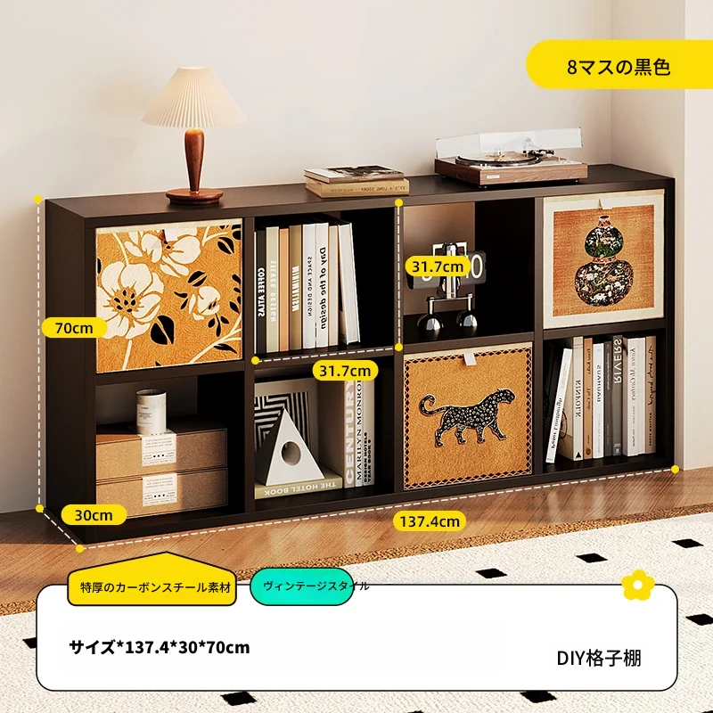 スチール製和風格子棚「カレック」書棚 - リビングや寝室に最適!自由に組み合わせ可能なスタンド式の8マス収納キャビネットで、スタイリッシュに整理整頓。