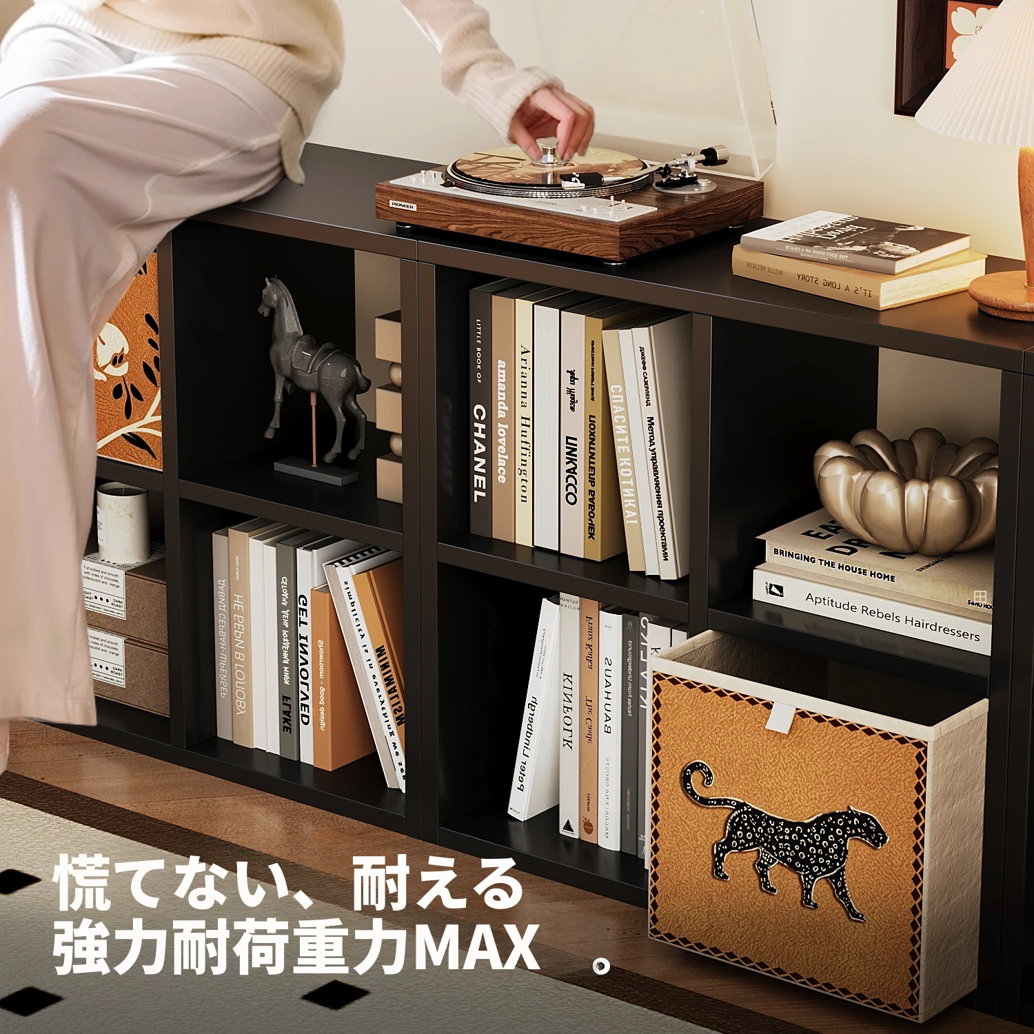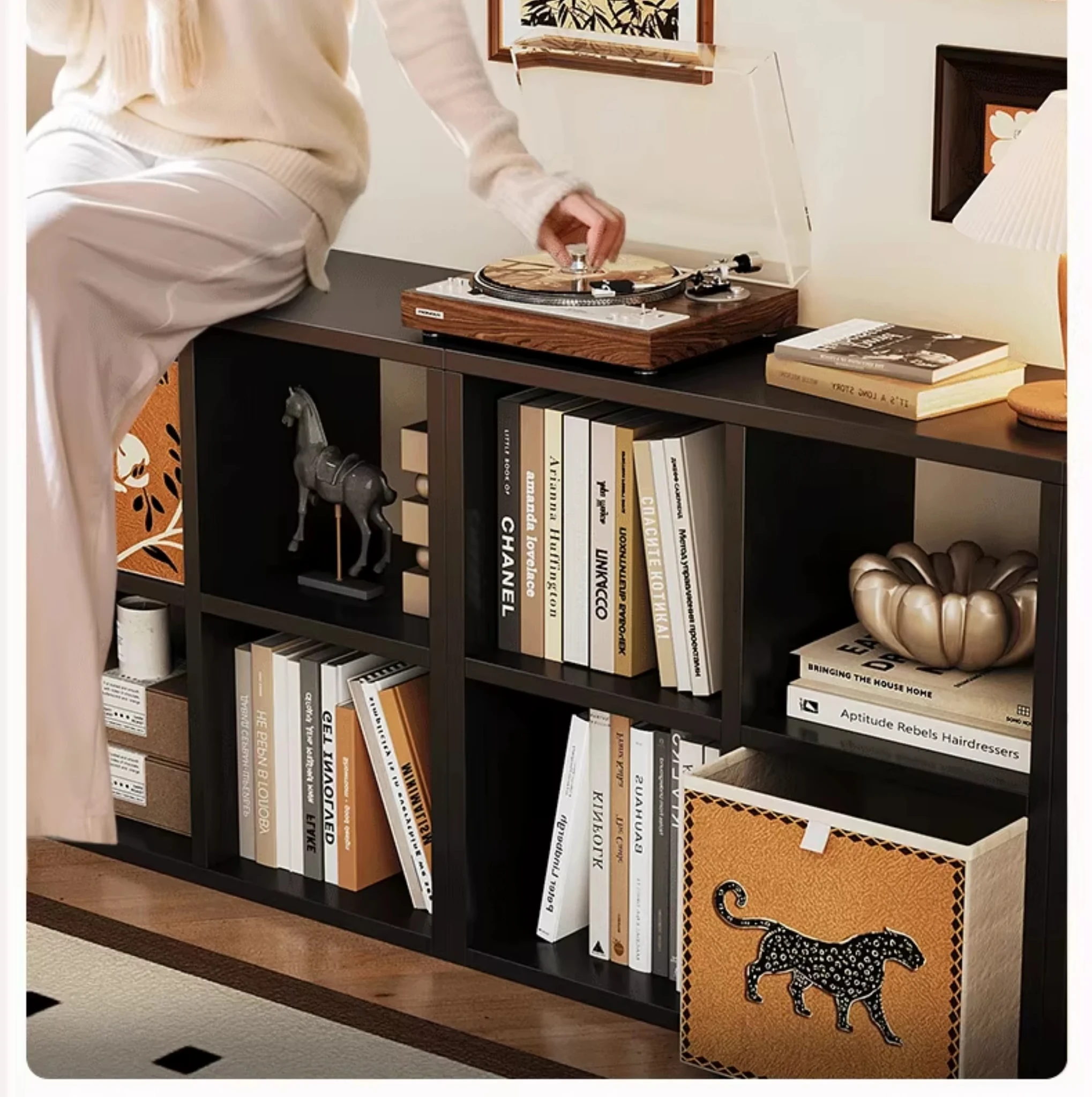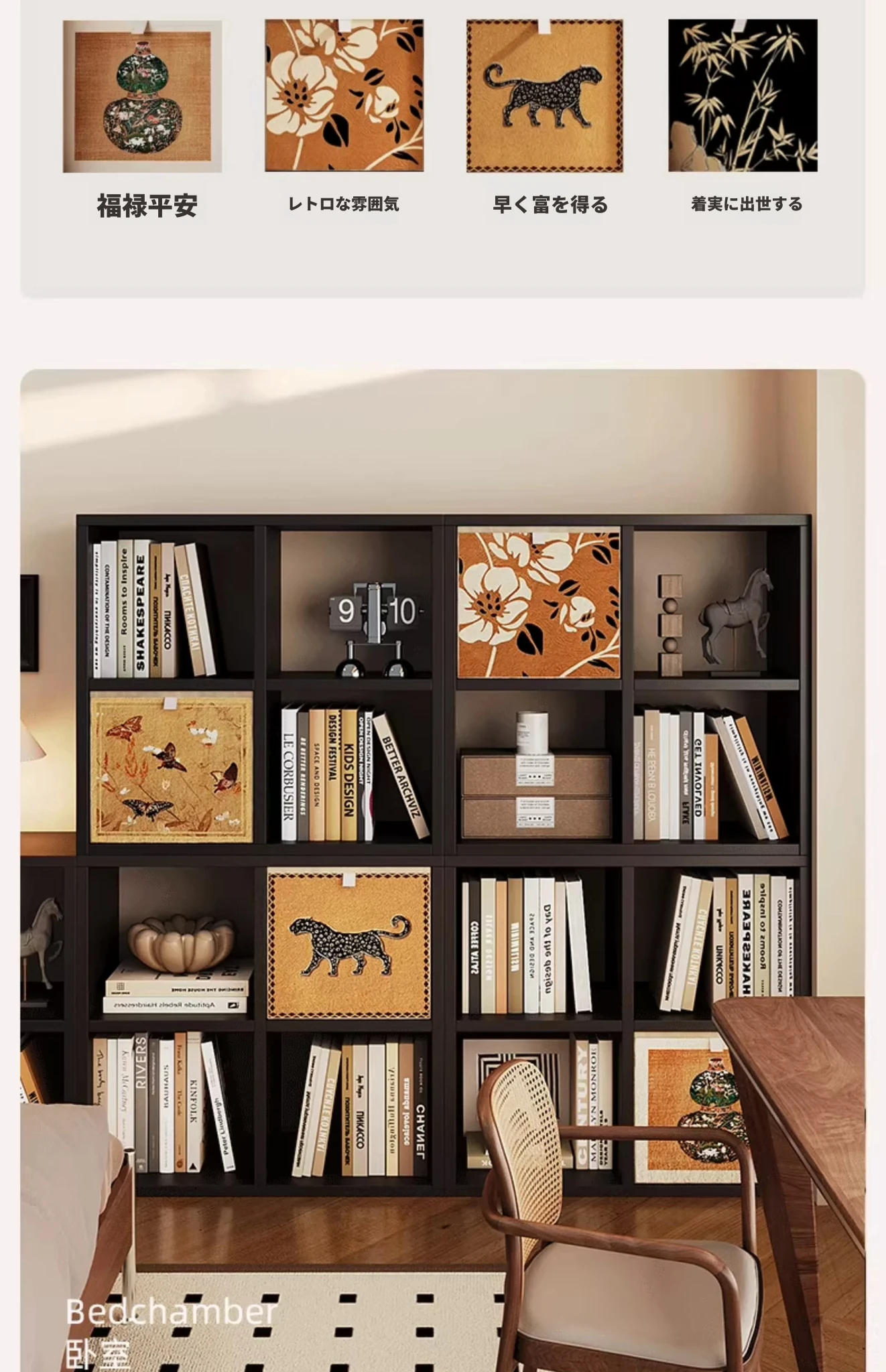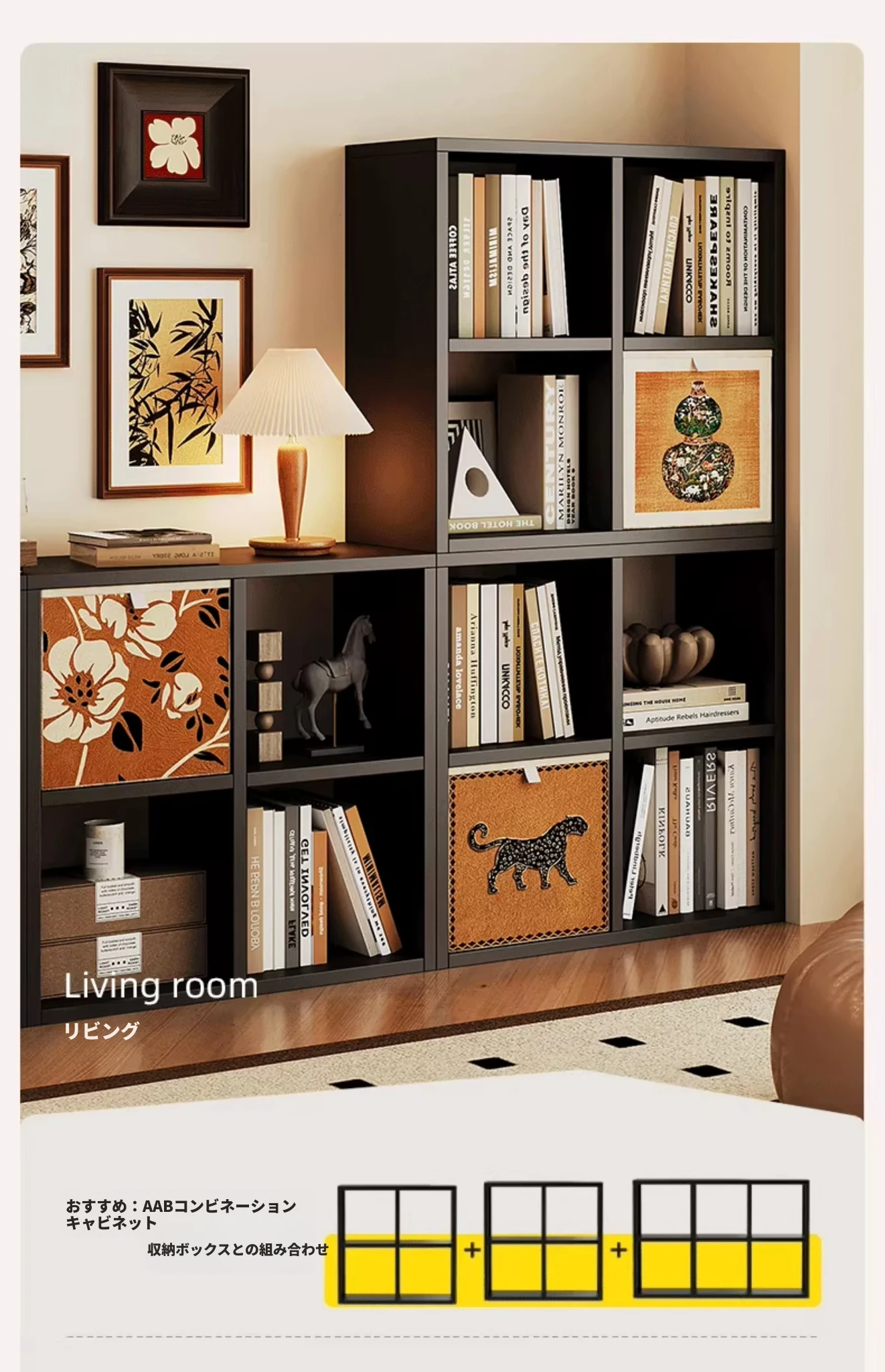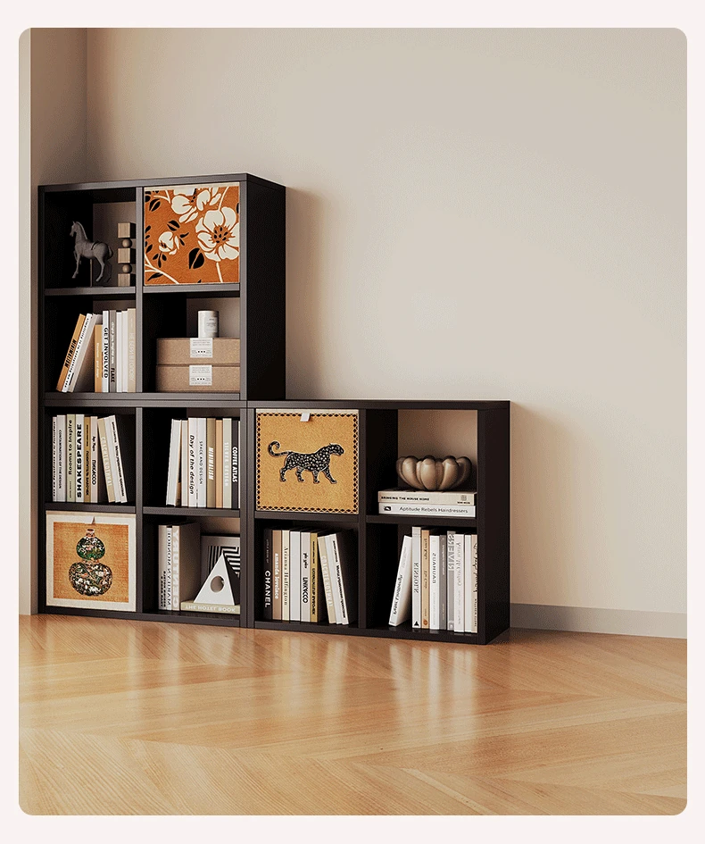 スチール製和風格子棚「カレック」書棚 - リビングや寝室に最適!自由に組み合わせ可能なスタンド式の8マス収納キャビネットで、スタイリッシュに整理整頓。
