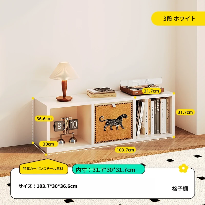 【スチールメッシュキャビネット】★白色一層三列3格キャビネット-横型★0フォルムアルデヒド★103.7*36.6*(30深さ)CM