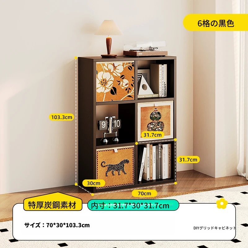 【スチールメッシュキャビネット】★黒色三層二列6格キャビネット-縦型★0フォルムアルデヒド★70*103.3*(30深さ)CM