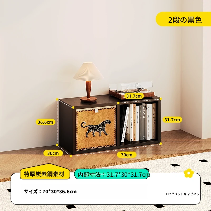 【スチールメッシュキャビネット】★黒色一層二列2格キャビネット-横型★0フォルムアルデヒド★70*36.6*(30深さ)CM