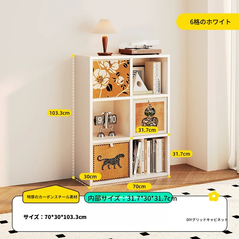 【スチールメッシュキャビネット】★白色三層二列6格キャビネット-縦型★0フォルムアルデヒド★70*103.3*(30深さ)CM