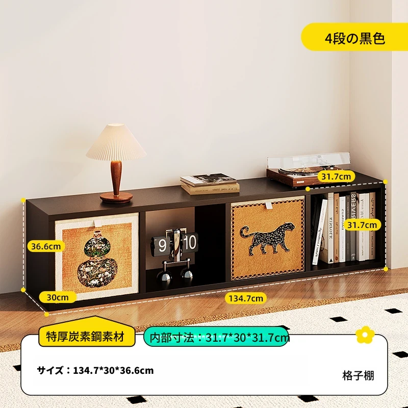 【スチールメッシュキャビネット】★黒色一層四列4格キャビネット-横型★0フォルムアルデヒド★134.7*36.6*(30深さ)CM
