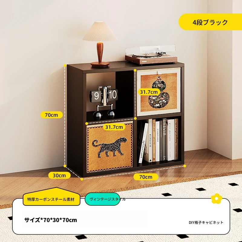 【スチールメッシュキャビネット】★黒色4格-横型★0フォルムアルデヒド★70*70*(30深さ)CM