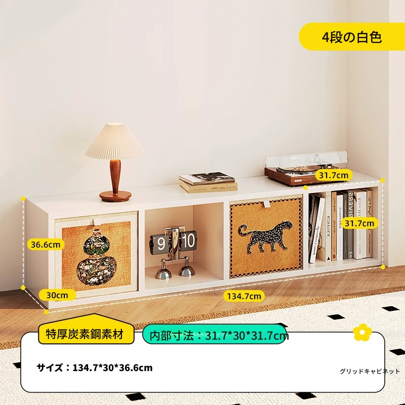 【スチールメッシュキャビネット】★白色一層四列4格キャビネット-横型★0フォルムアルデヒド★134.7*36.6*(30深さ)CM