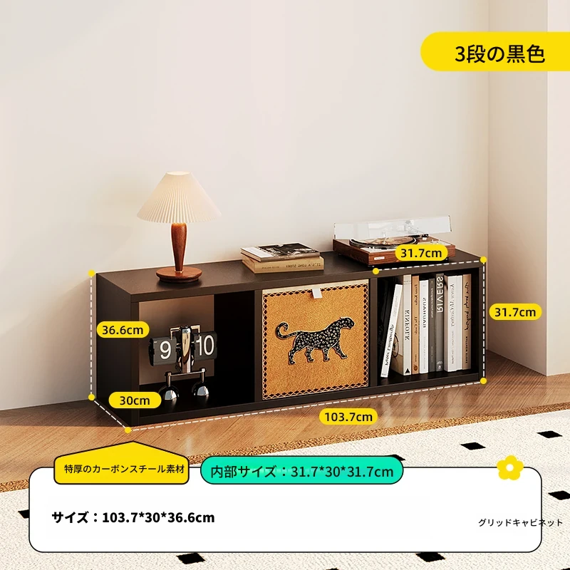 【スチールメッシュキャビネット】★黒色一層三列3格キャビネット-横型★0フォルムアルデヒド★103.7*36.6*(30深さ)CM