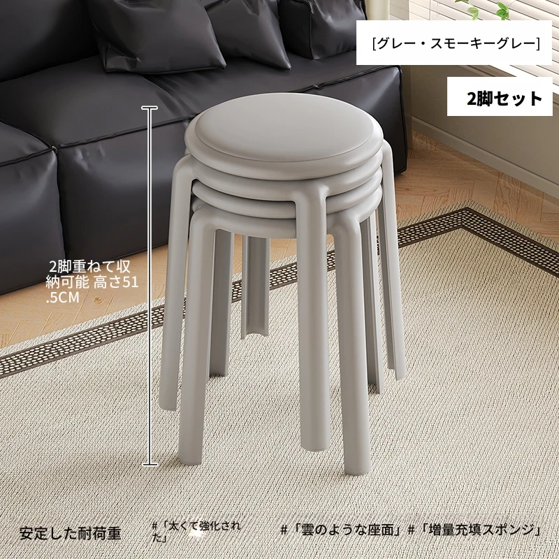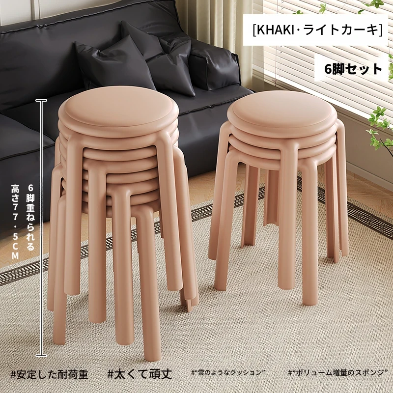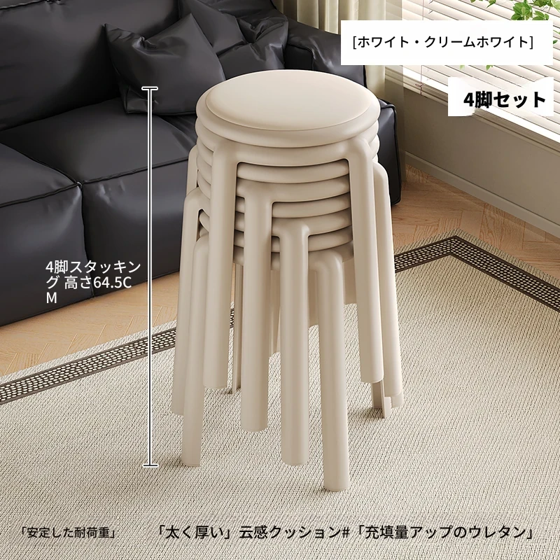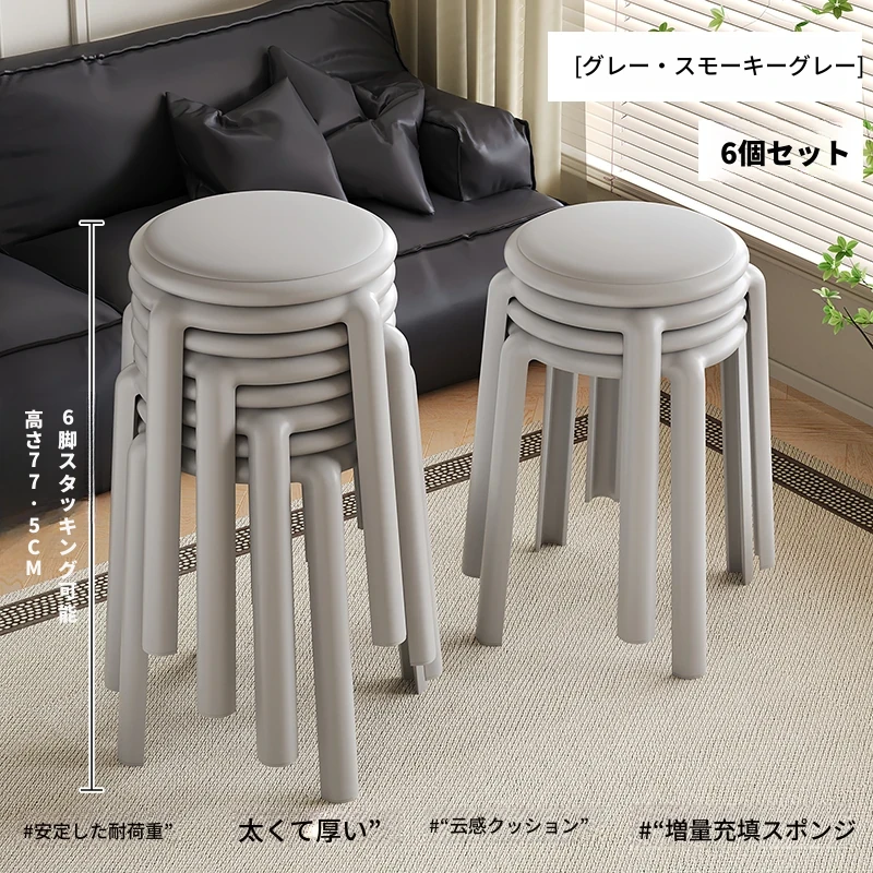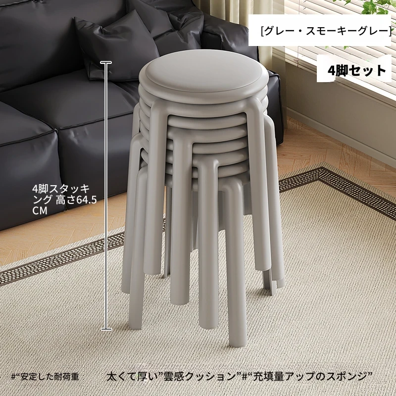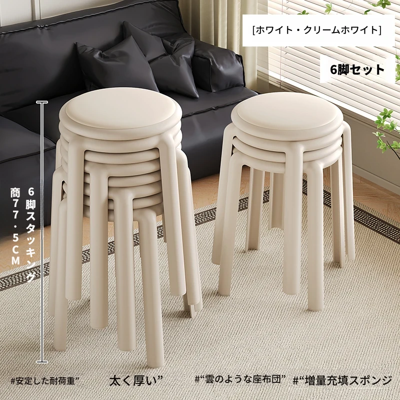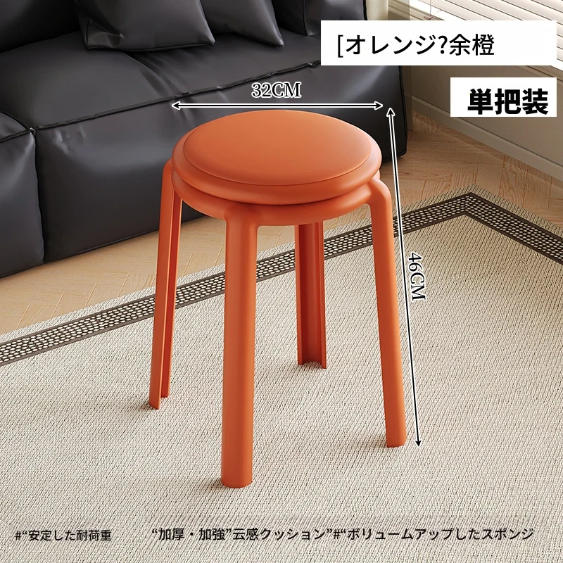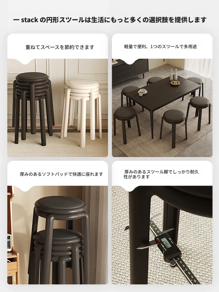 厚手ソフトプラスチックスツール - スタッキング可能な丸椅子!家庭用に最適、頑丈で耐久性抜群!ダイニングテーブルやリビングルームのサブチェアとして活躍します。