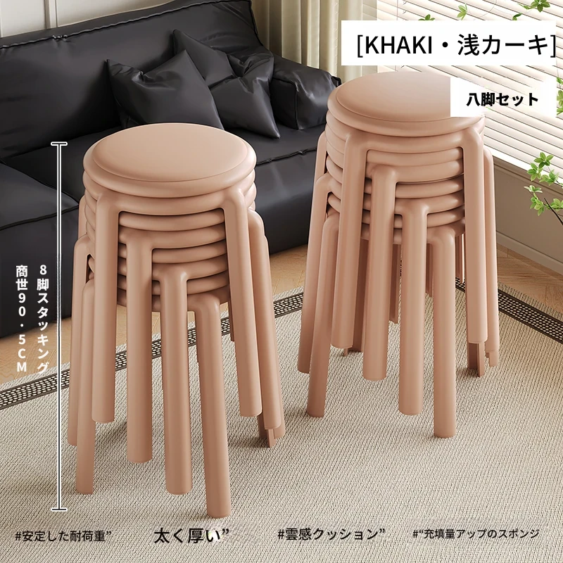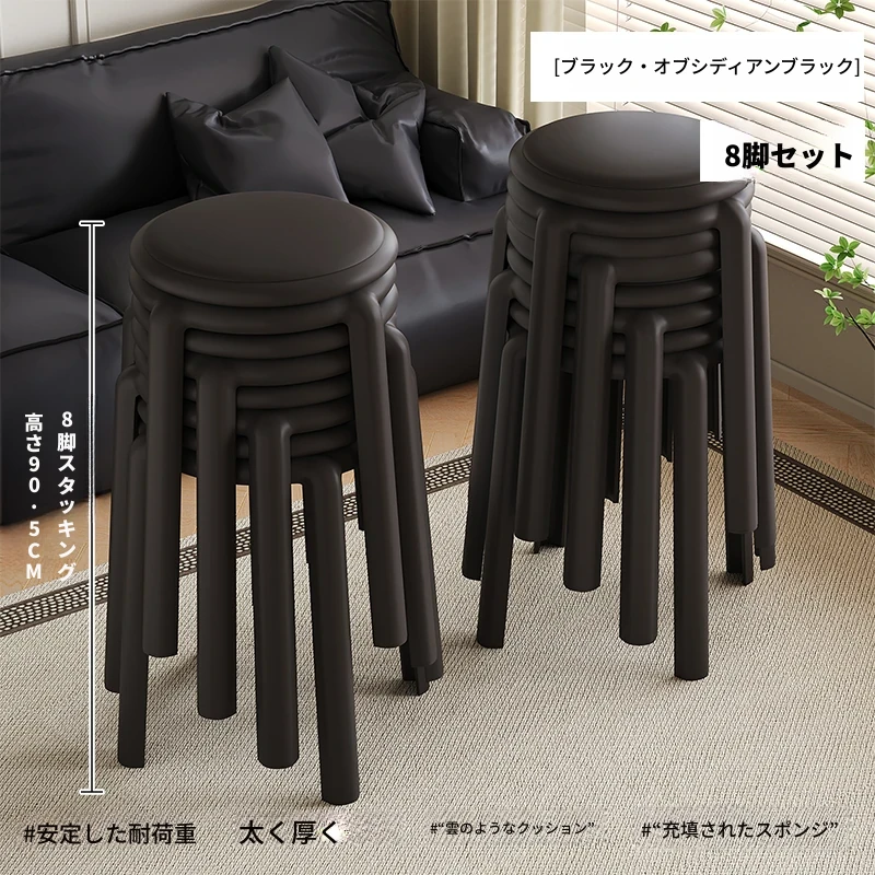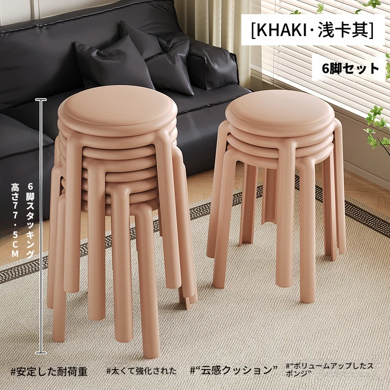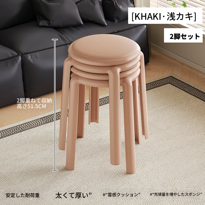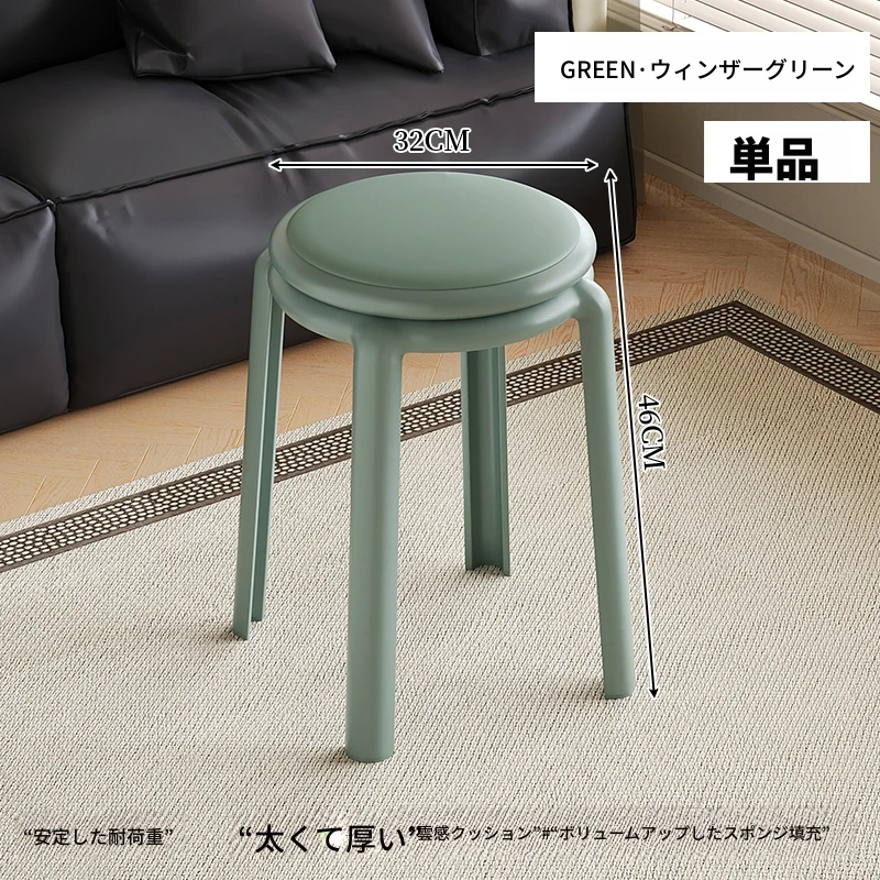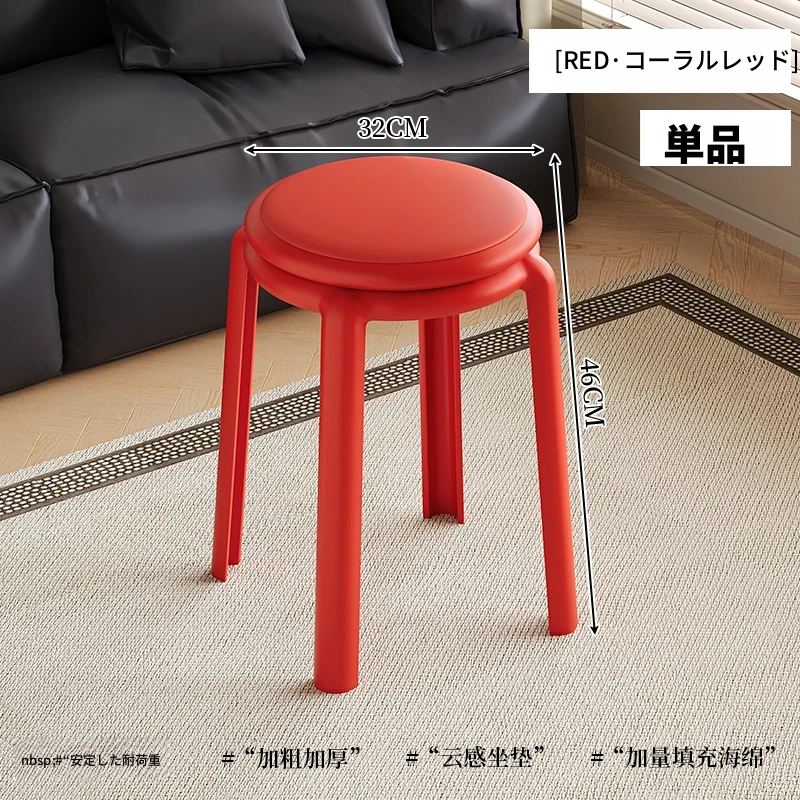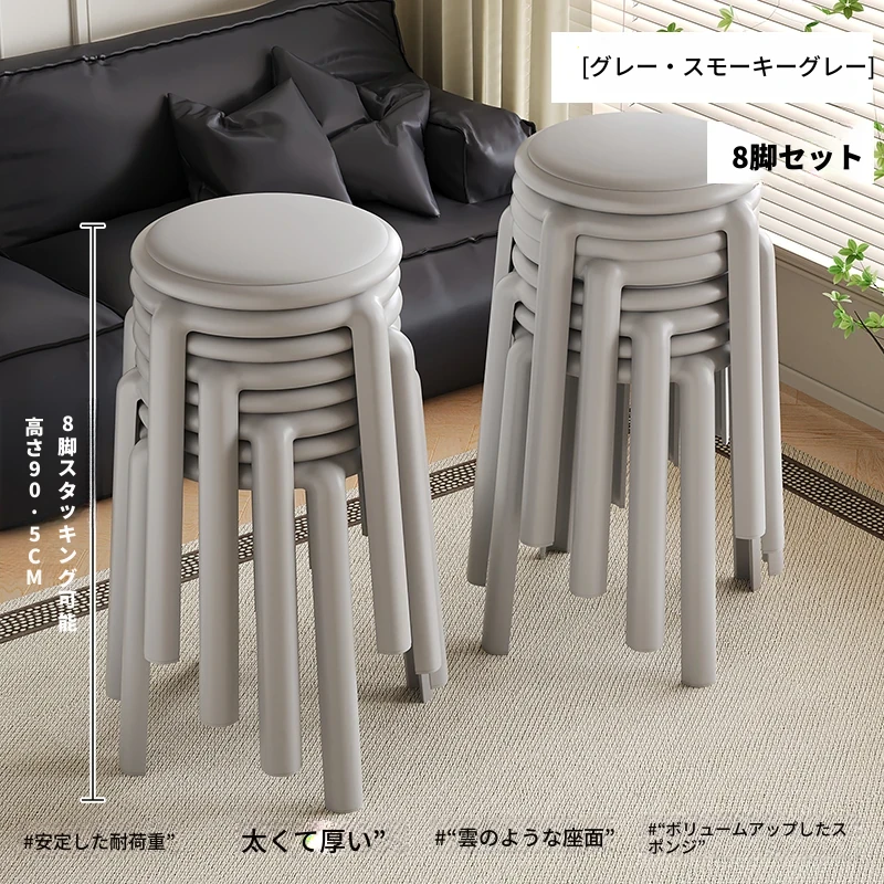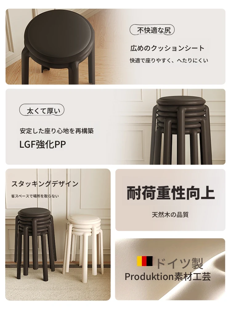 厚手ソフトプラスチックスツール - スタッキング可能な丸椅子!家庭用に最適、頑丈で耐久性抜群!ダイニングテーブルやリビングルームのサブチェアとして活躍します。