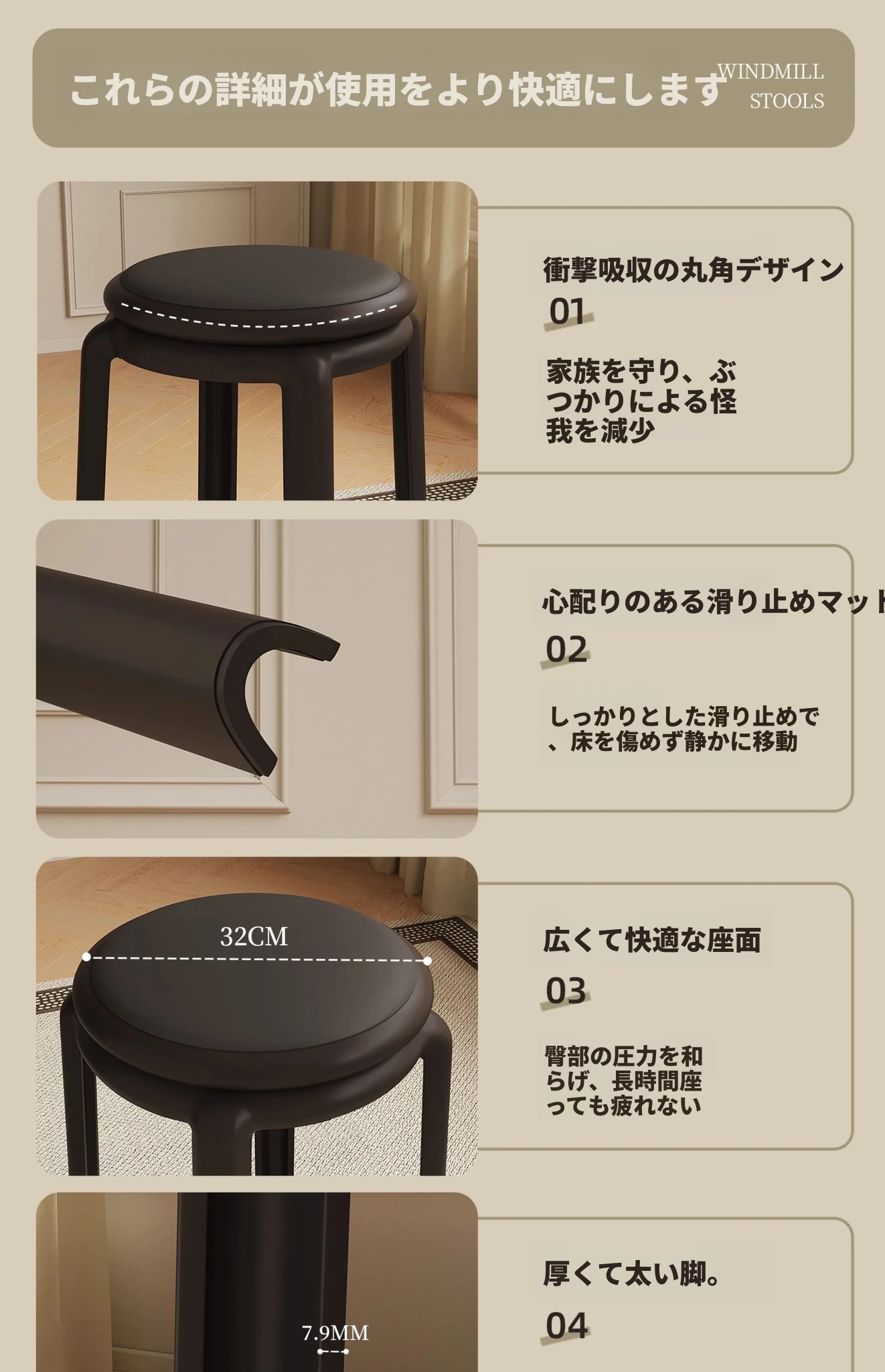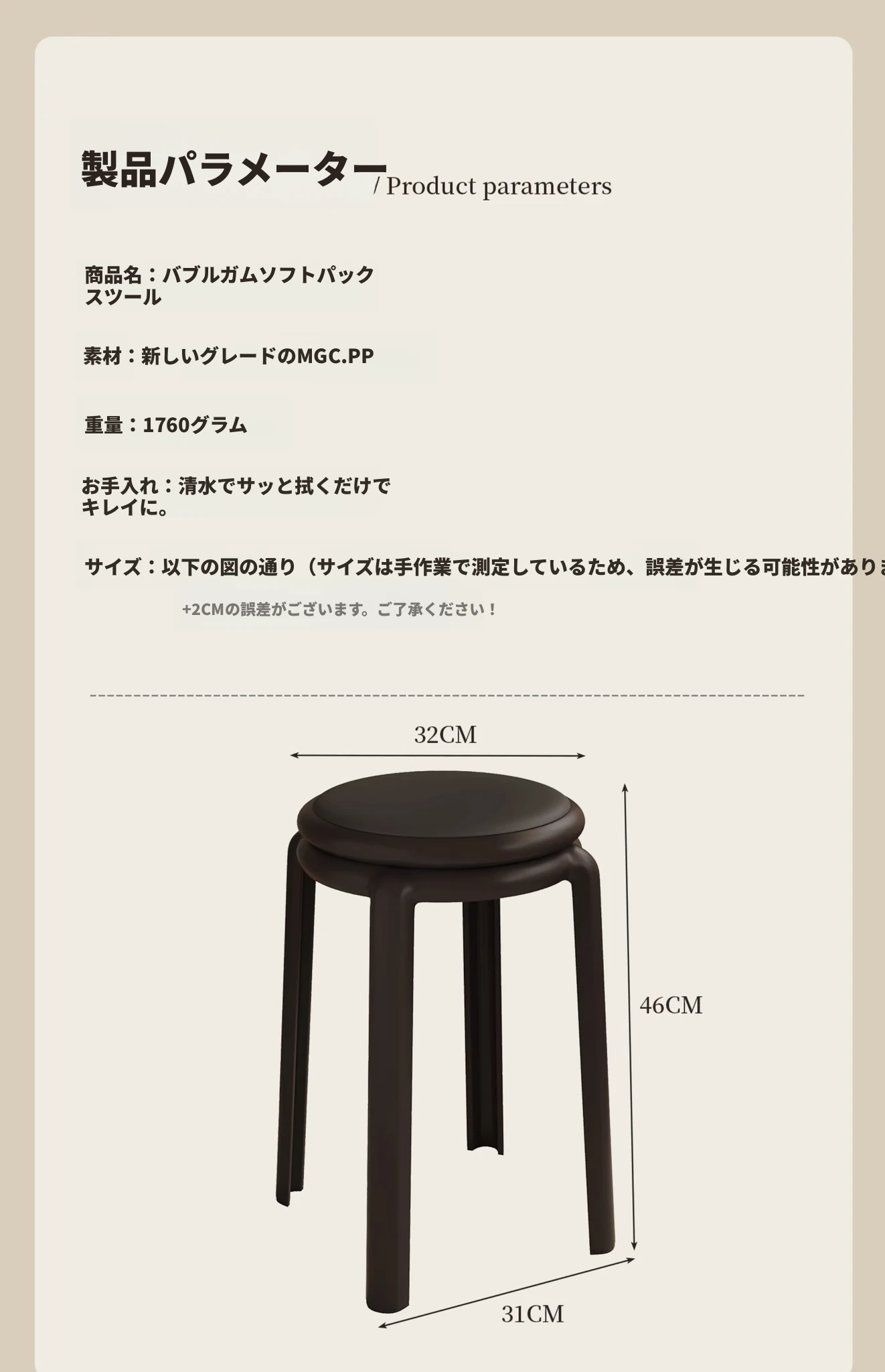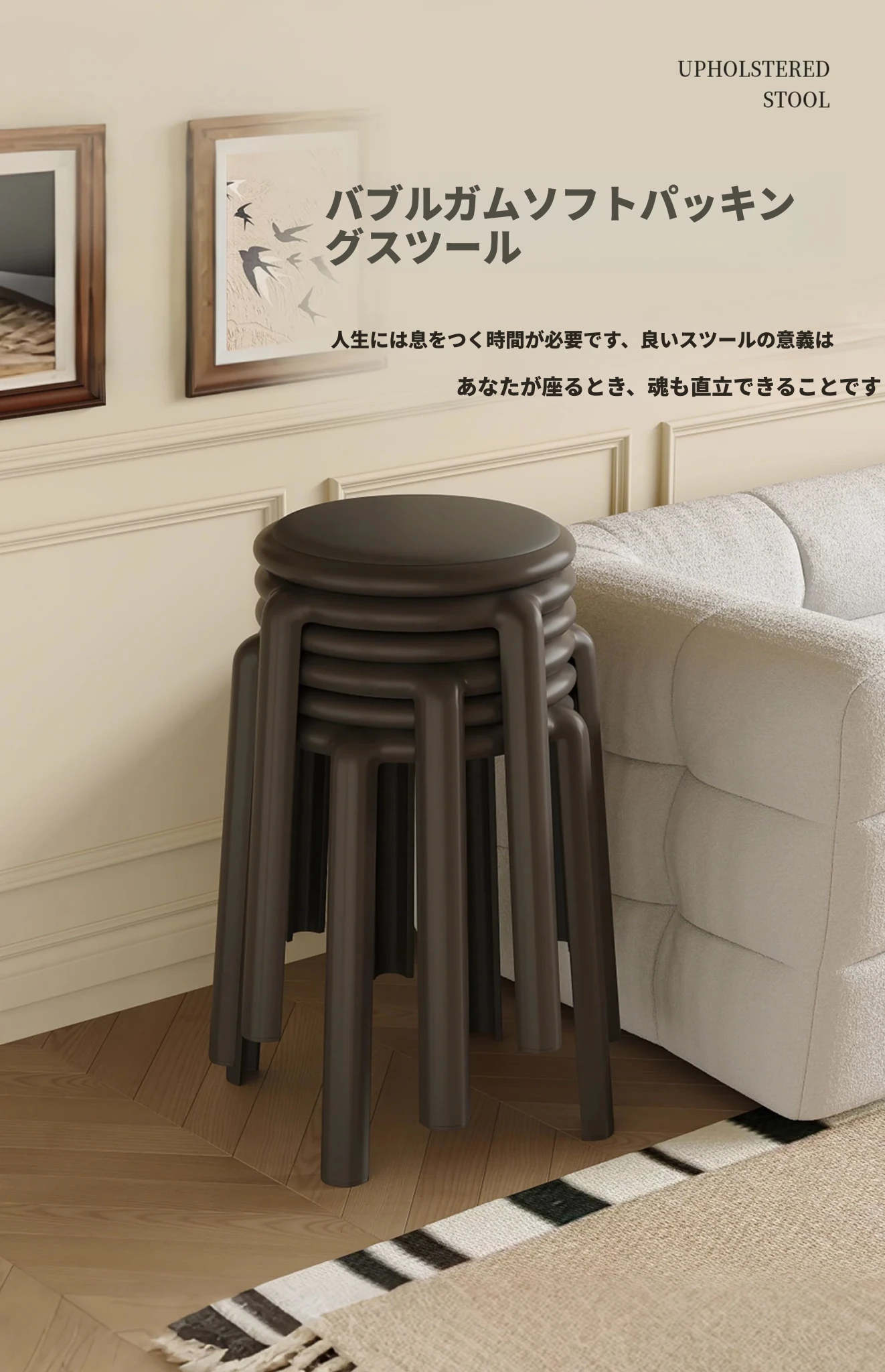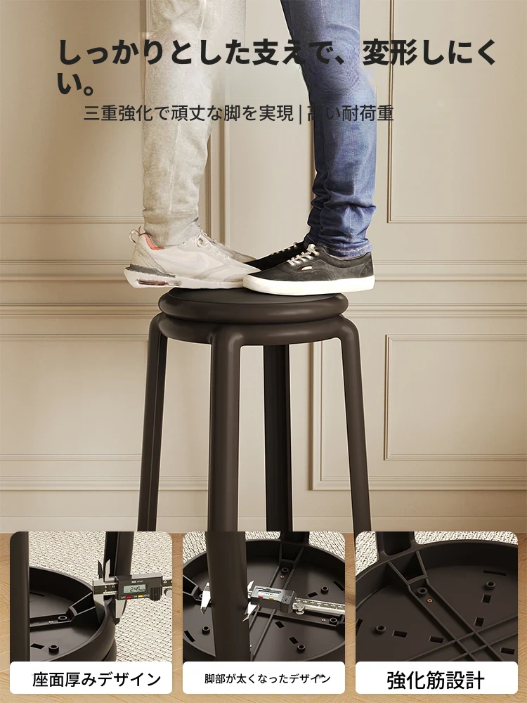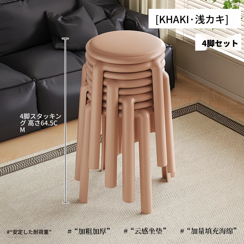 厚手ソフトプラスチックスツール - スタッキング可能な丸椅子!家庭用に最適、頑丈で耐久性抜群!ダイニングテーブルやリビングルームのサブチェアとして活躍します。