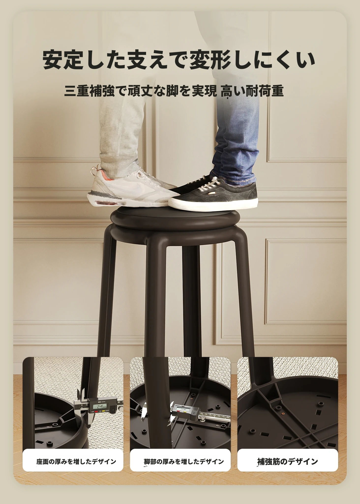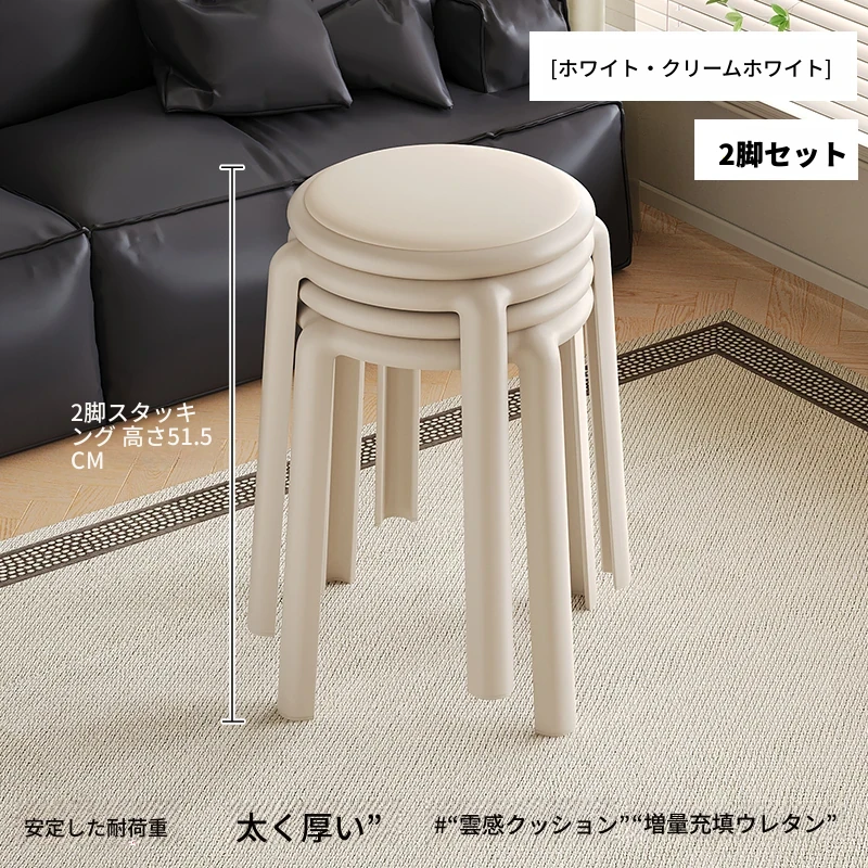 2脚セット-クリームホワイト【座り壊れ保証 三人立っても無理なし】