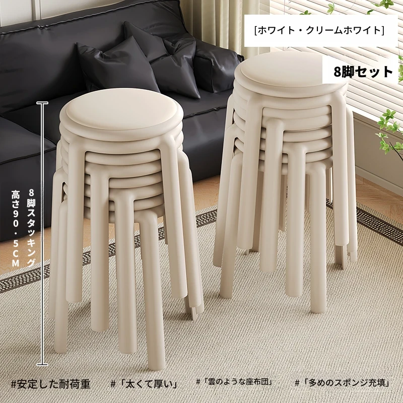 8脚セット-クリームホワイト【座り壊れ保証 三人立っても無理なし】
