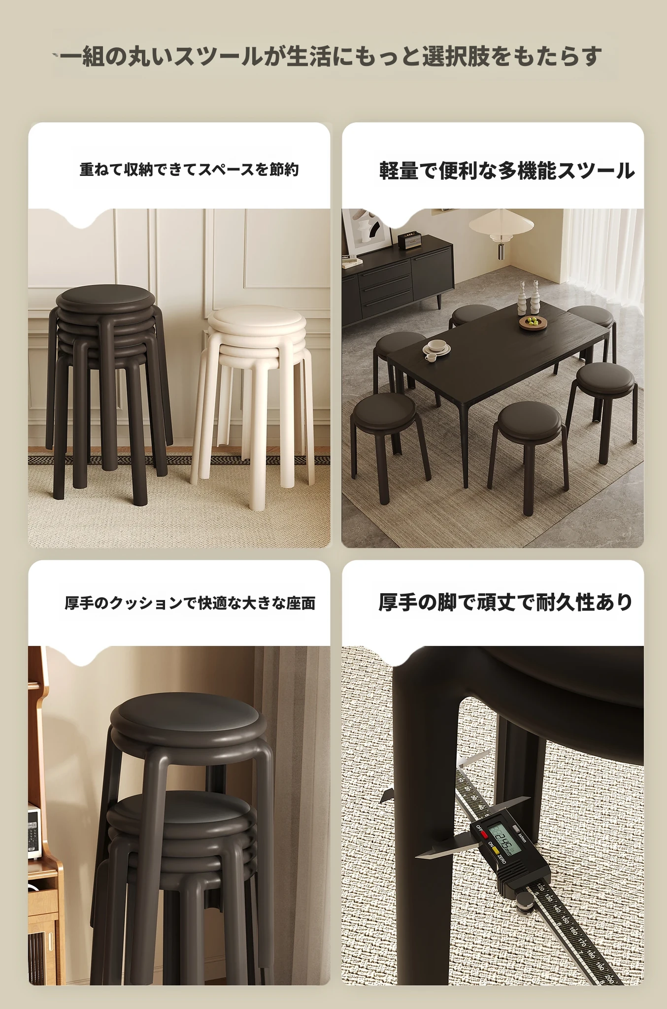 4脚セット-クリームホワイト【座り壊れ保証 三人立っても無理なし】