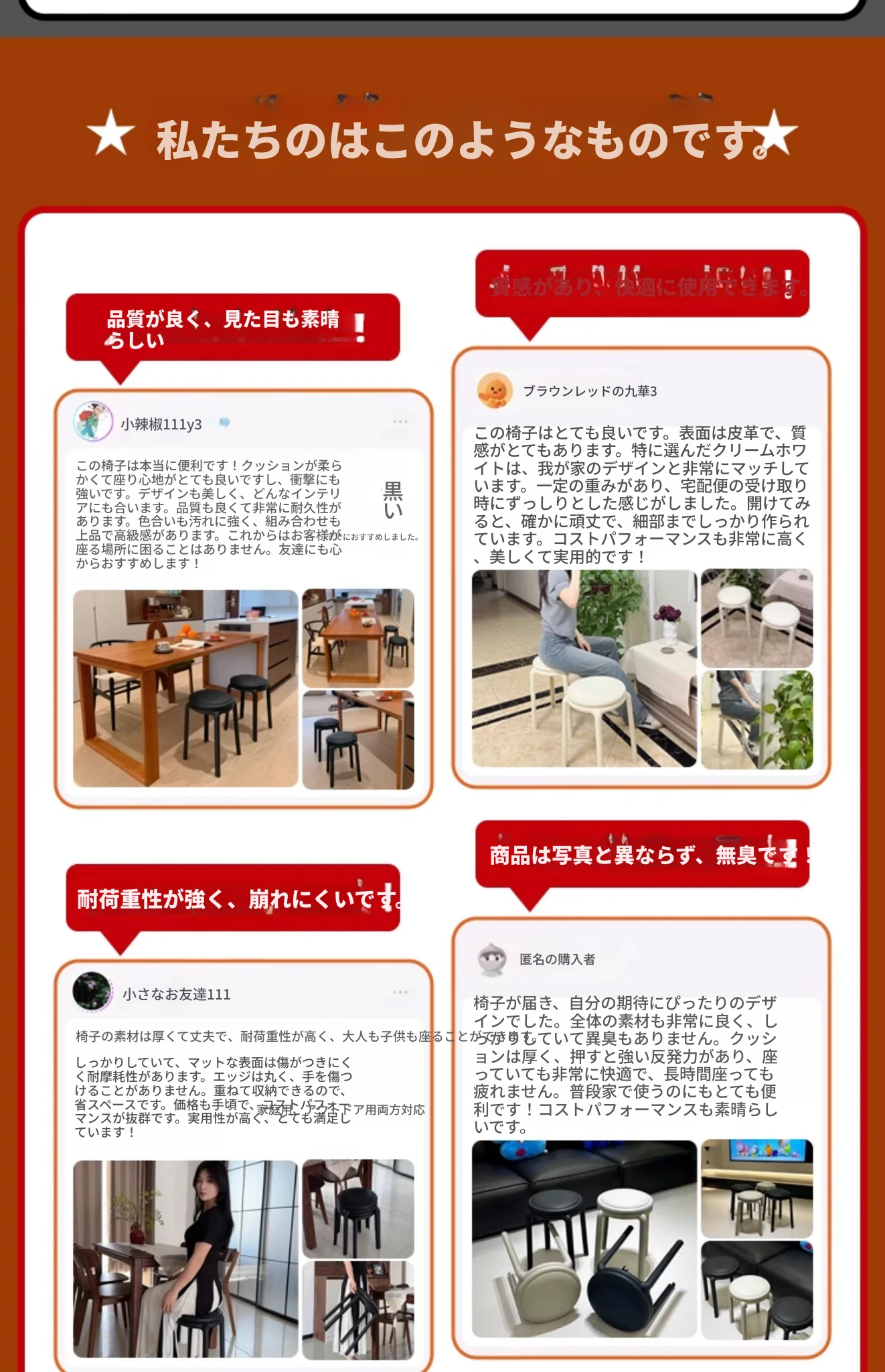 6脚セット-クリームホワイト【座り壊れ保証 三人立っても無理なし】