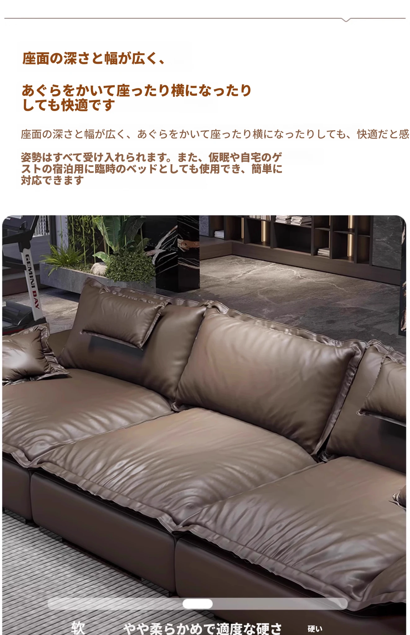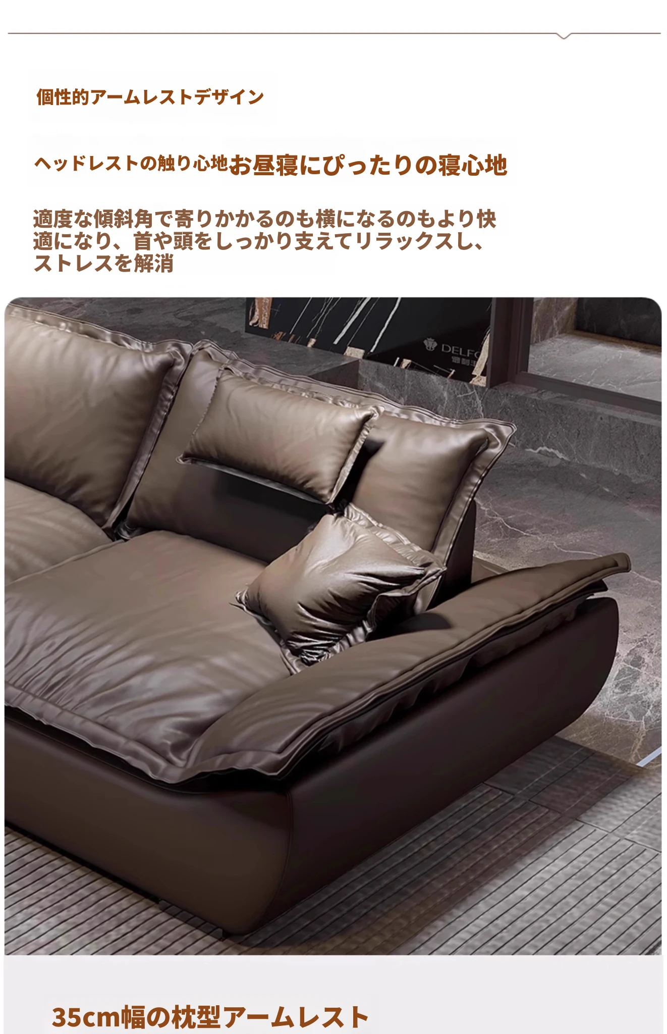 セーリングスタイルのトップグレード牛革ソファ!超広々とした座面と深さで、まるで人間と犬のための快適な巣のよう。リビングにぴったりの直排式、調節可能な背もたれで、至福のリラックスタイムをお楽しみください!