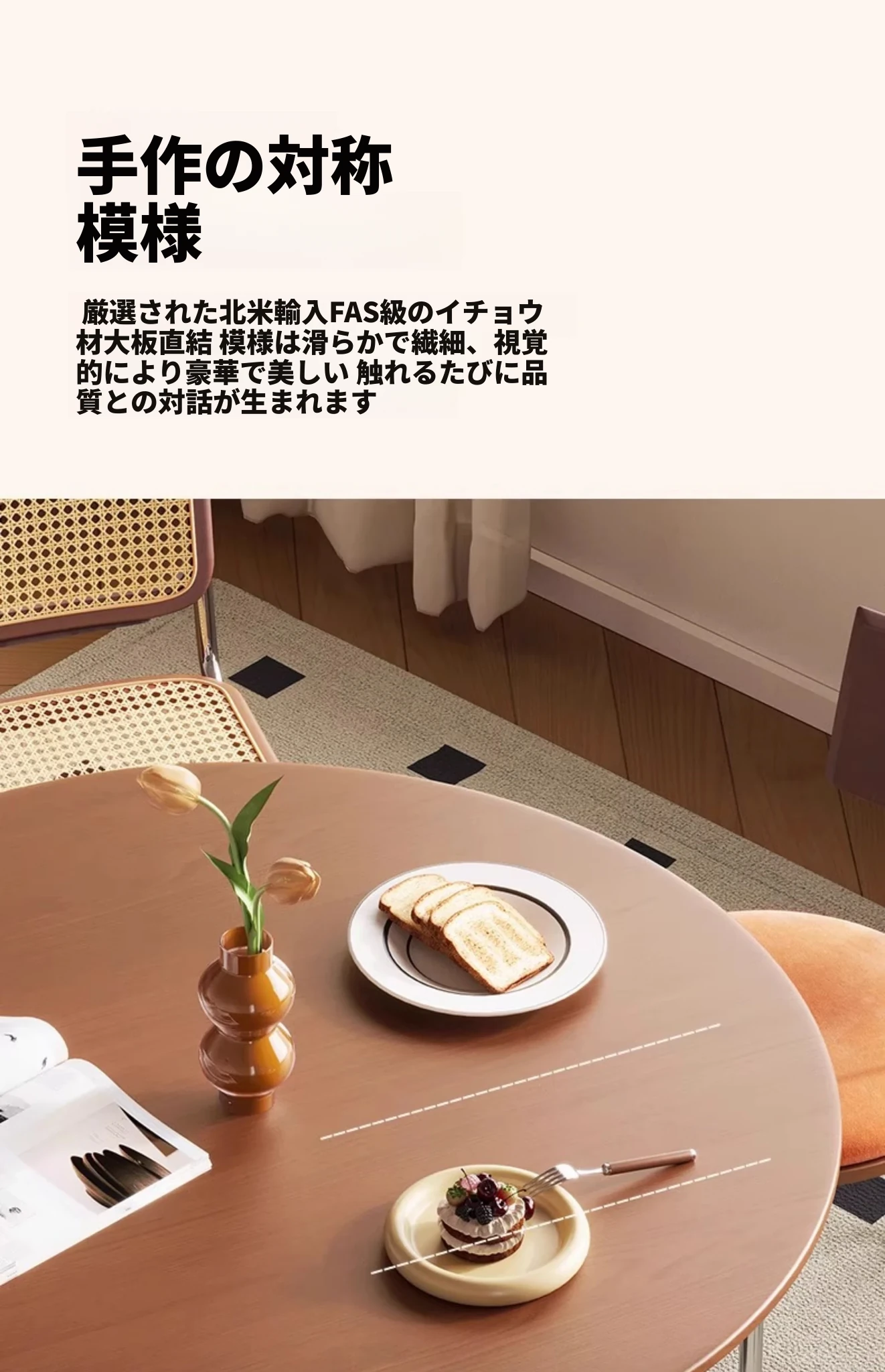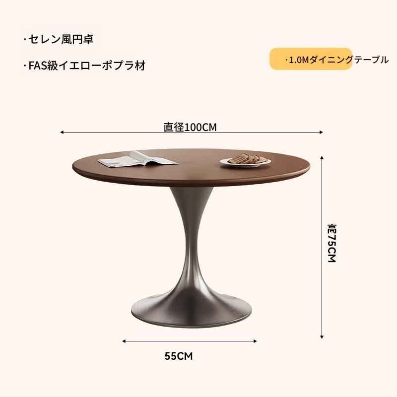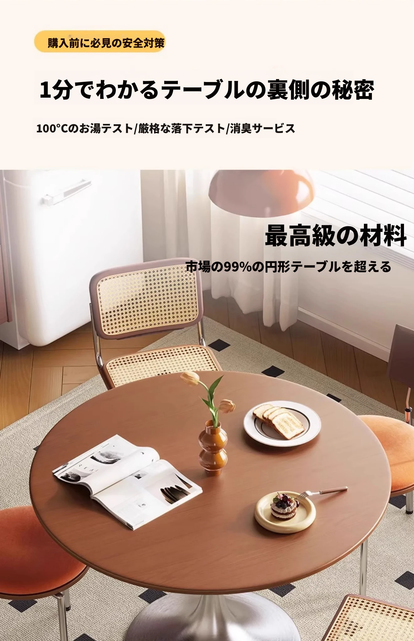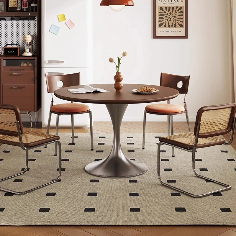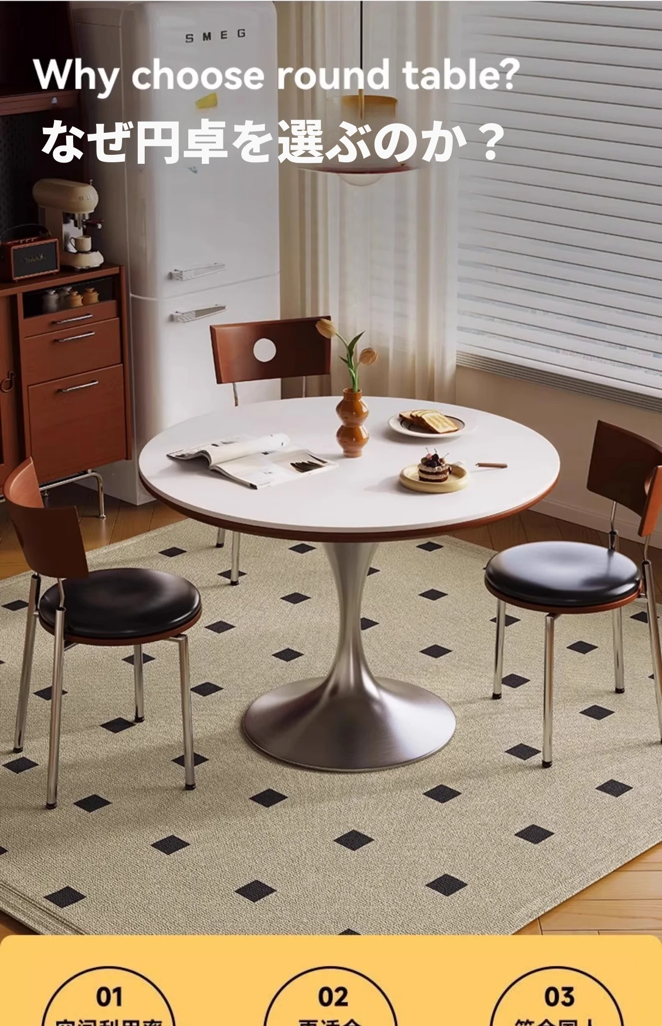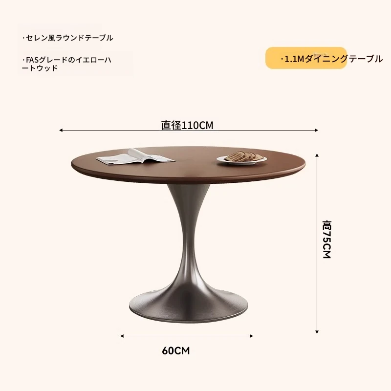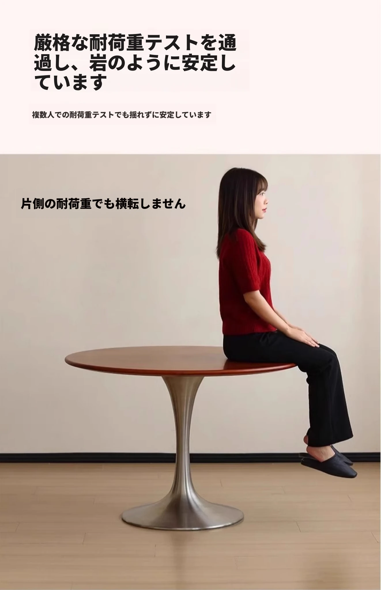 ヴィンテージ風の無垢材ダイニングテーブルとステンレス製の椅子のセット - 小型住宅に最適なチューリップデザインのレトロな円形テーブルと椅子で、居心地の良い食事空間を演出!