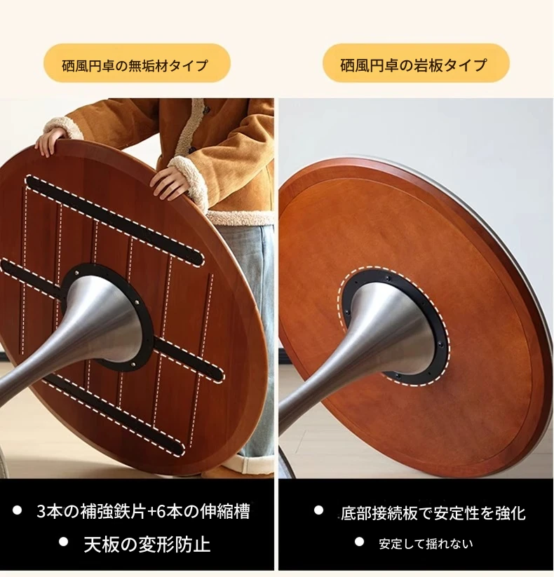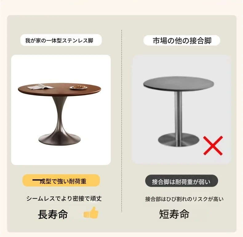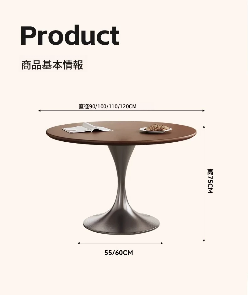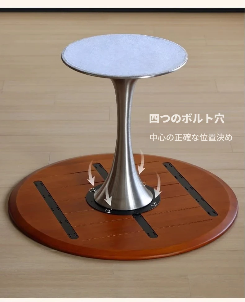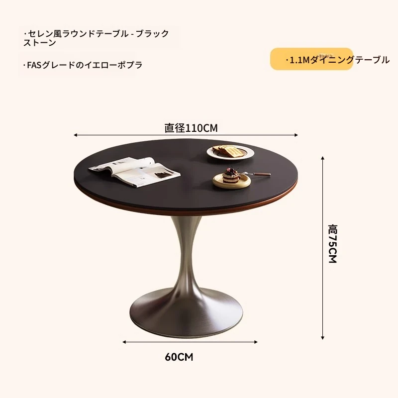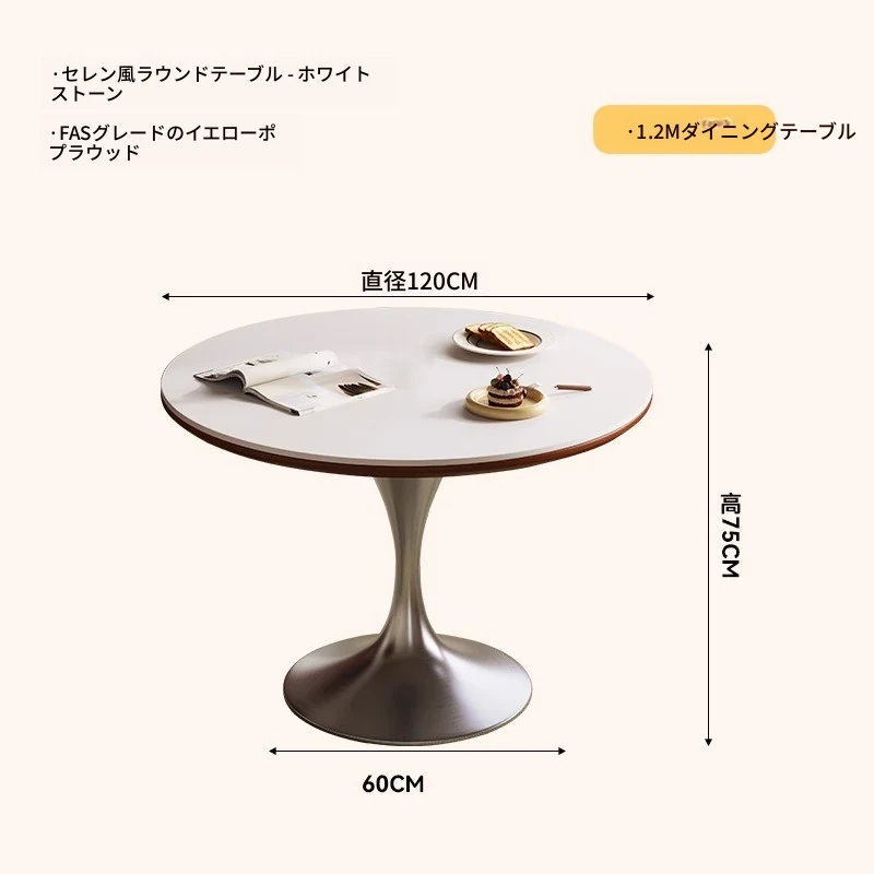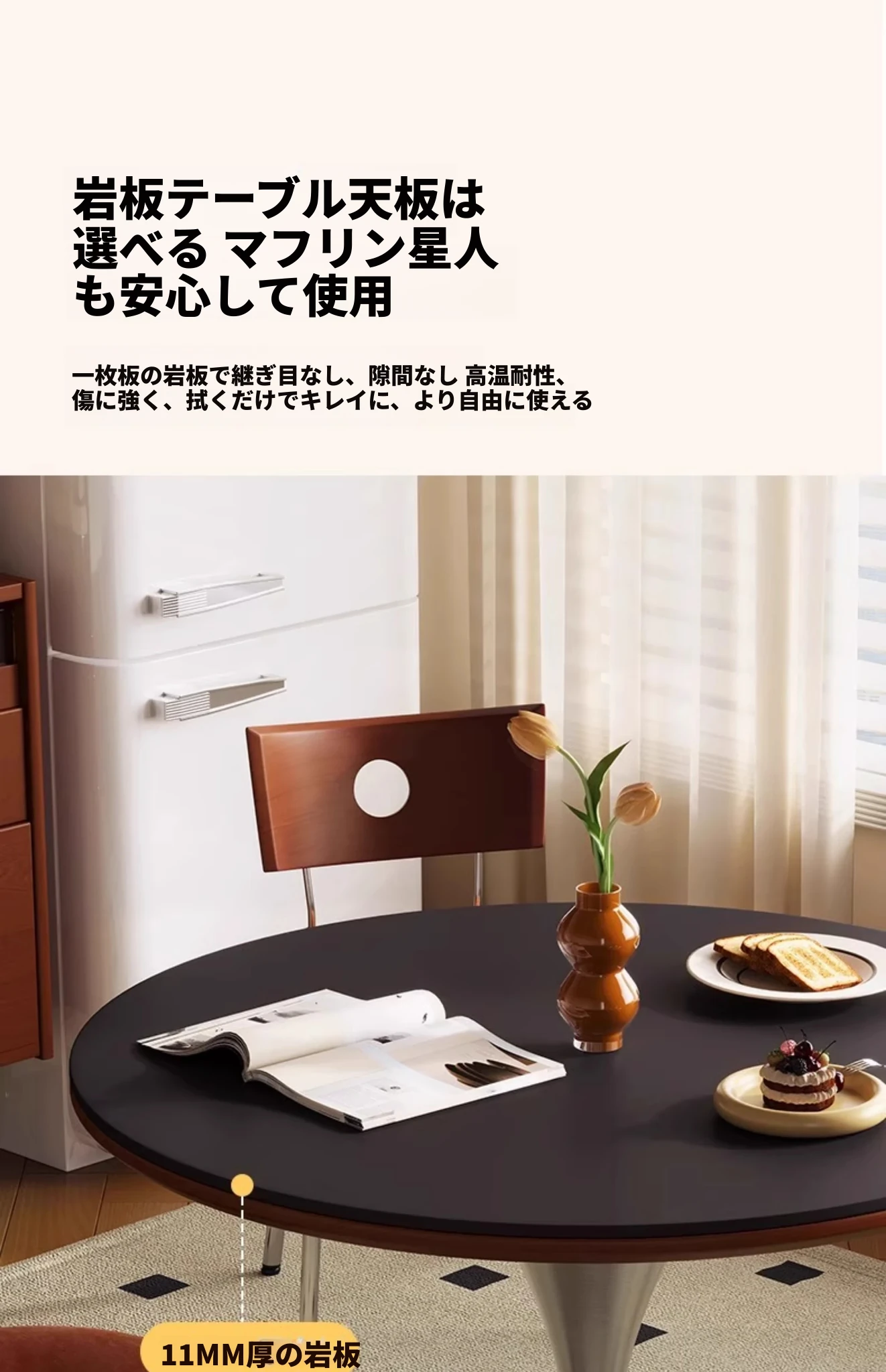 ヴィンテージ風の無垢材ダイニングテーブルとステンレス製の椅子のセット - 小型住宅に最適なチューリップデザインのレトロな円形テーブルと椅子で、居心地の良い食事空間を演出!