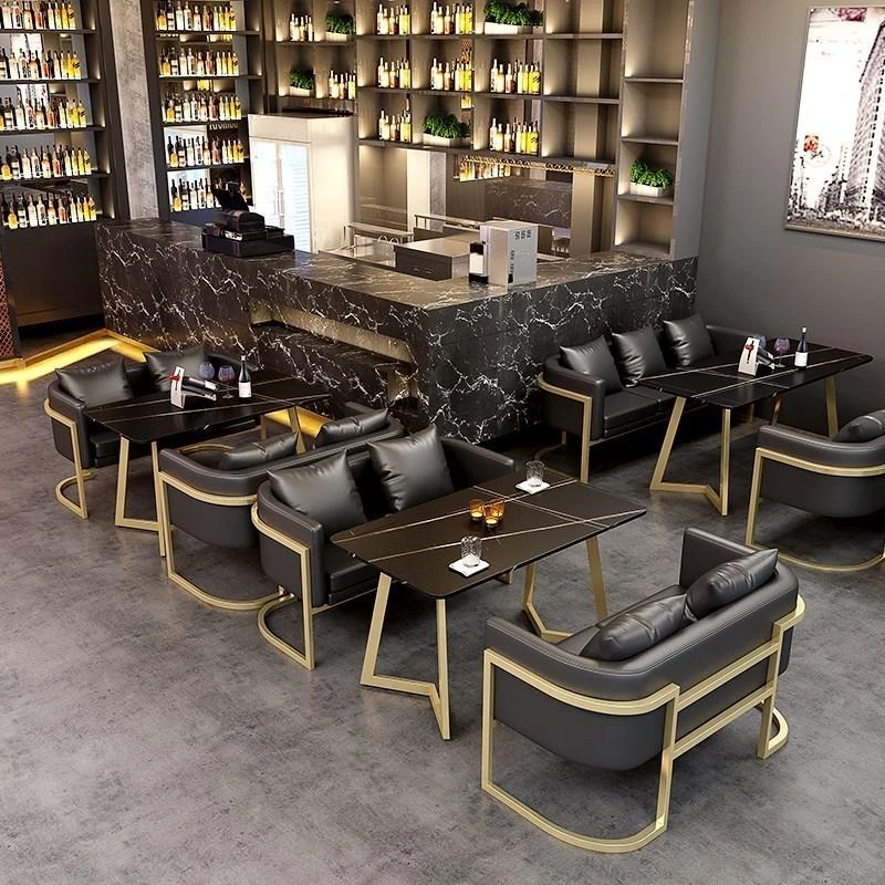 レトロなバーのボックスソファー 工業風 音楽カフェ用のレザーソファ テーブル&椅子セットで、くつろぎのひとときを!おしゃれな空間を演出し、友人との会話や特別な時間を楽しむのに最適です。
