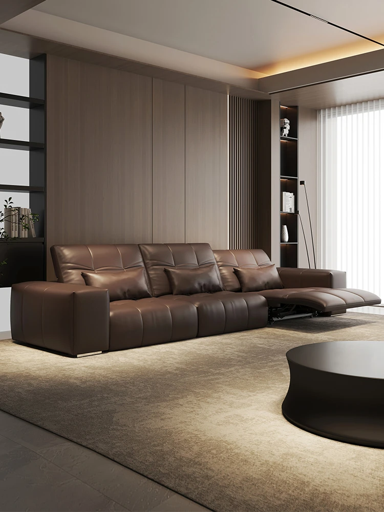高級ドイツブランドの電動機能付き本革ソファー - プレミアムなトップグレイン牛革使用、イタリアンミニマルデザインのピクセルソファ、エレガントなブラウンカラーで、贅沢な癒しの空間を実現!